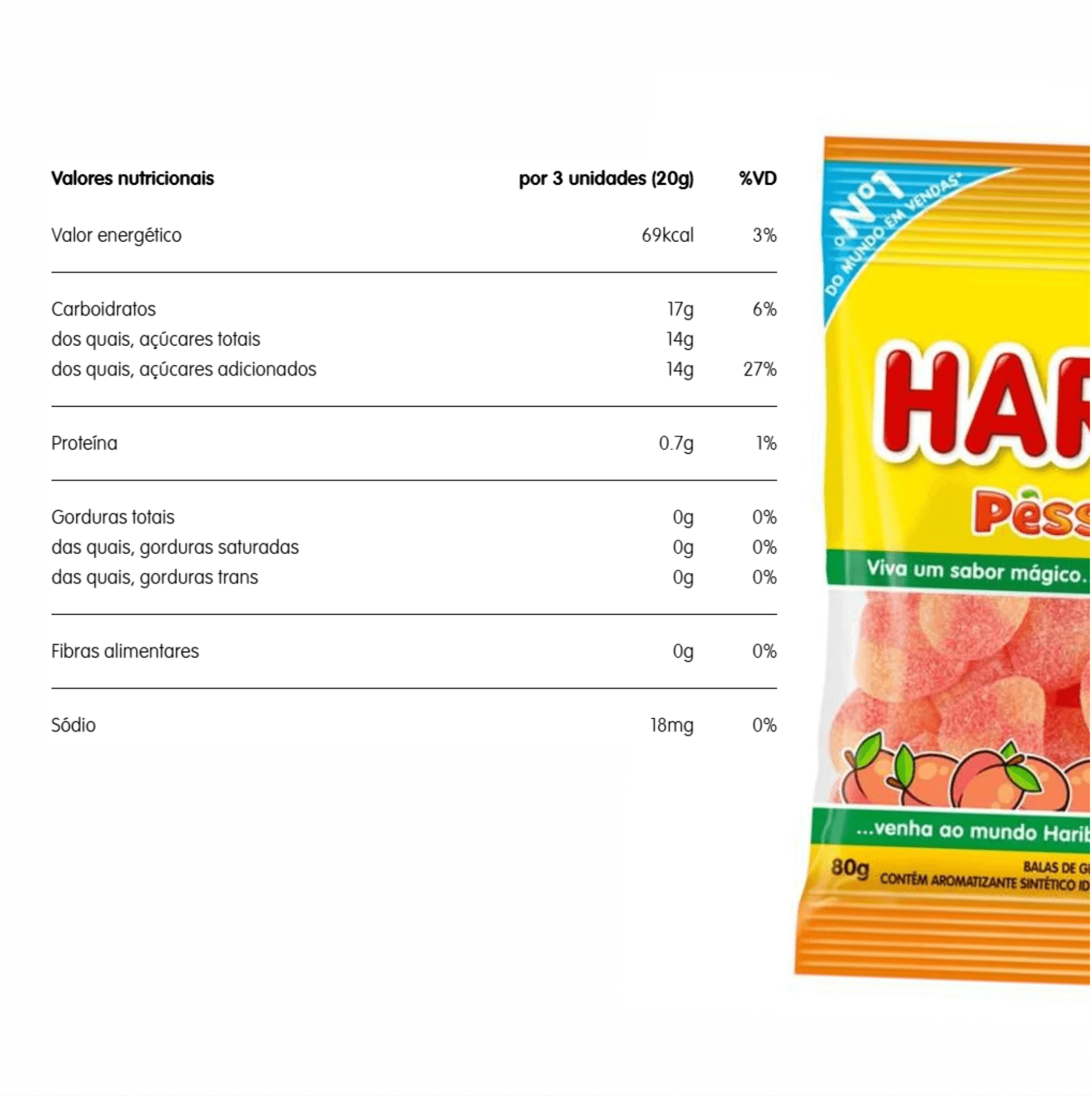 BALA GEL HARIBO PÊSSEGOS 80g