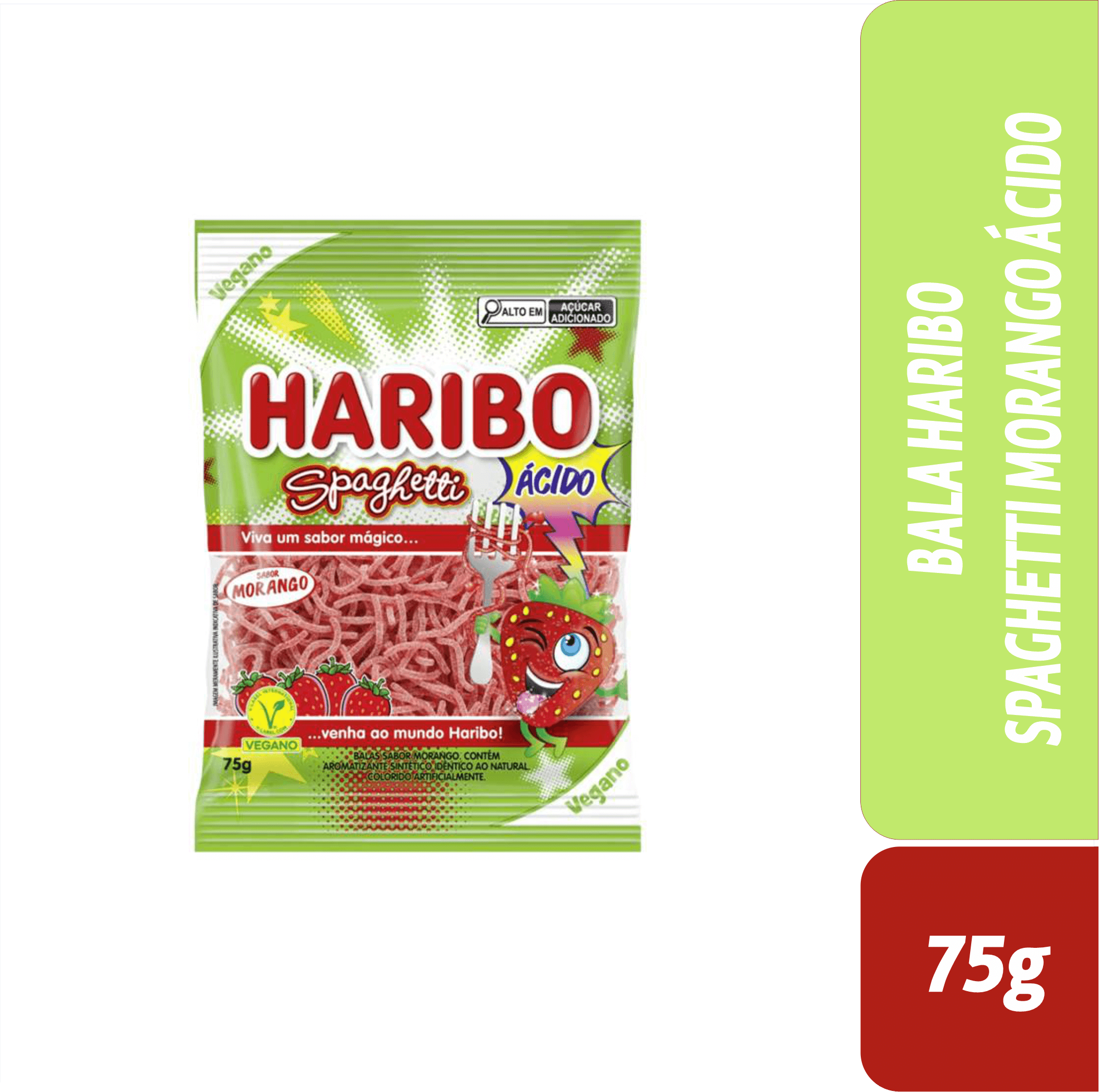 BALA HARIBO SPAGHETTI MORANGO ÁCIDO 75g