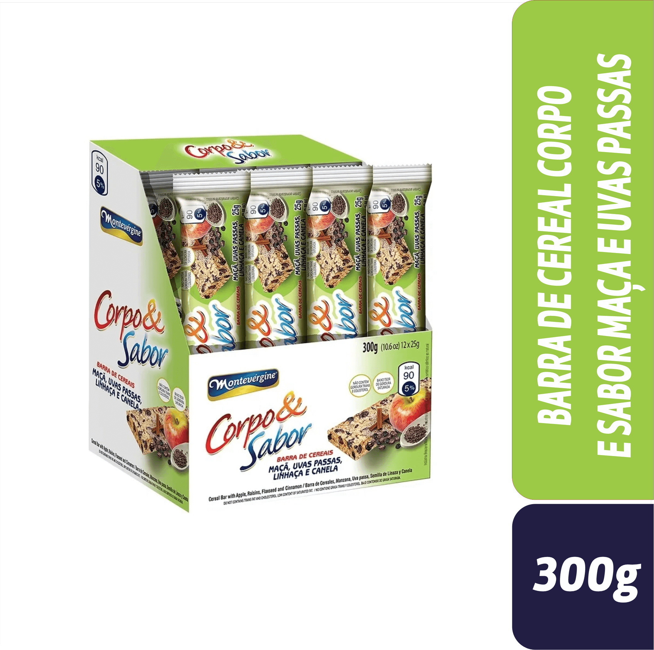 BARRA DE CEREAL CORPO E SABOR MAÇA E UVAS PASSAS 300G
