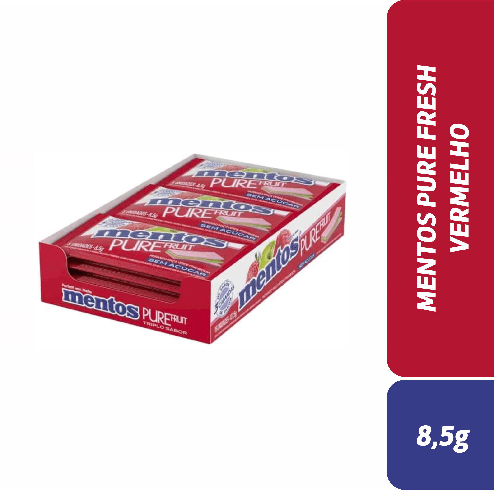 MENTOS 3+ PURE FRUIT C/5 VERMELHO 8,5G