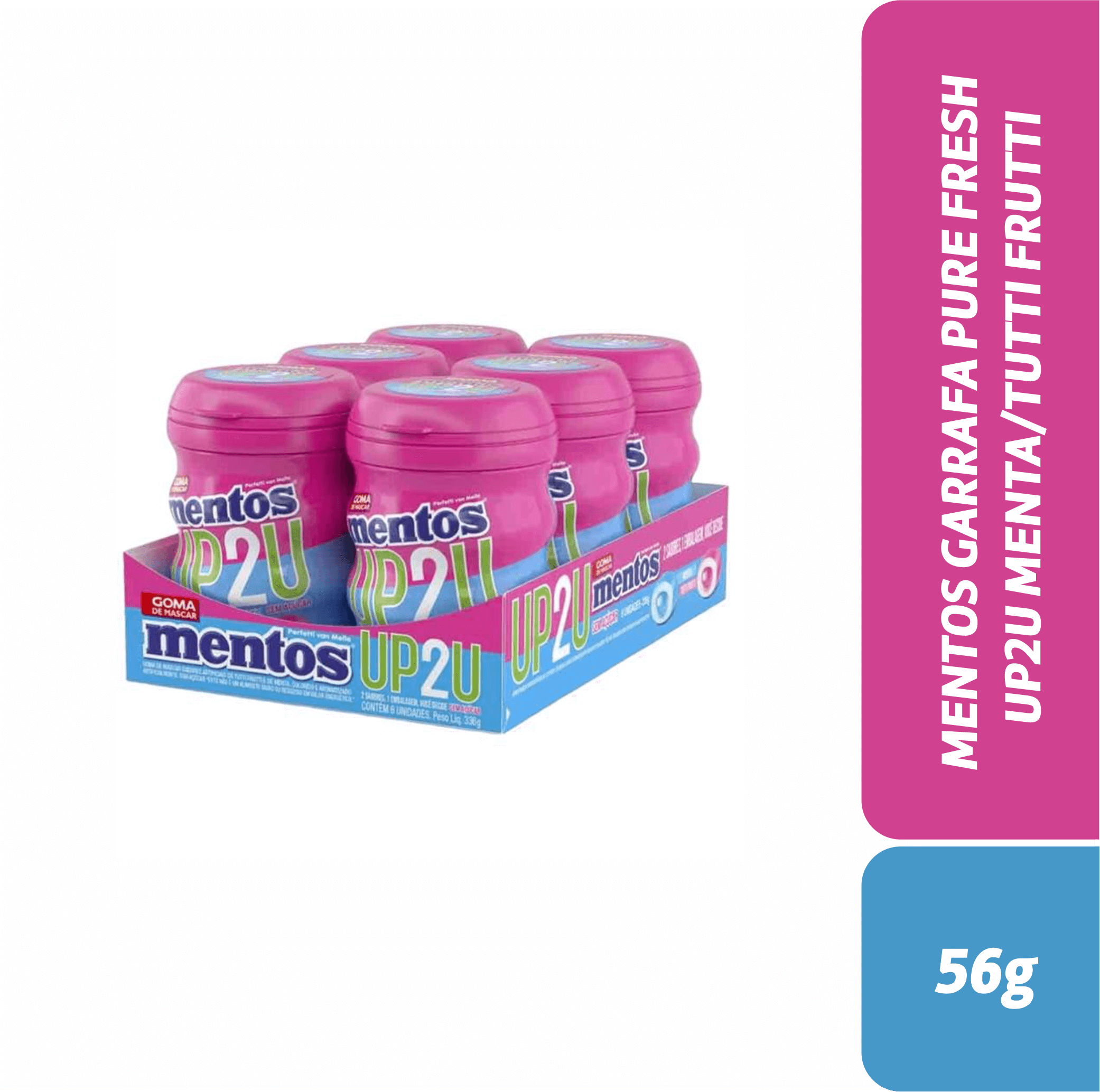 MENTOS GARRAFA PURE FRESH UP2U MENTA/TUTTI FRUTTI 56g