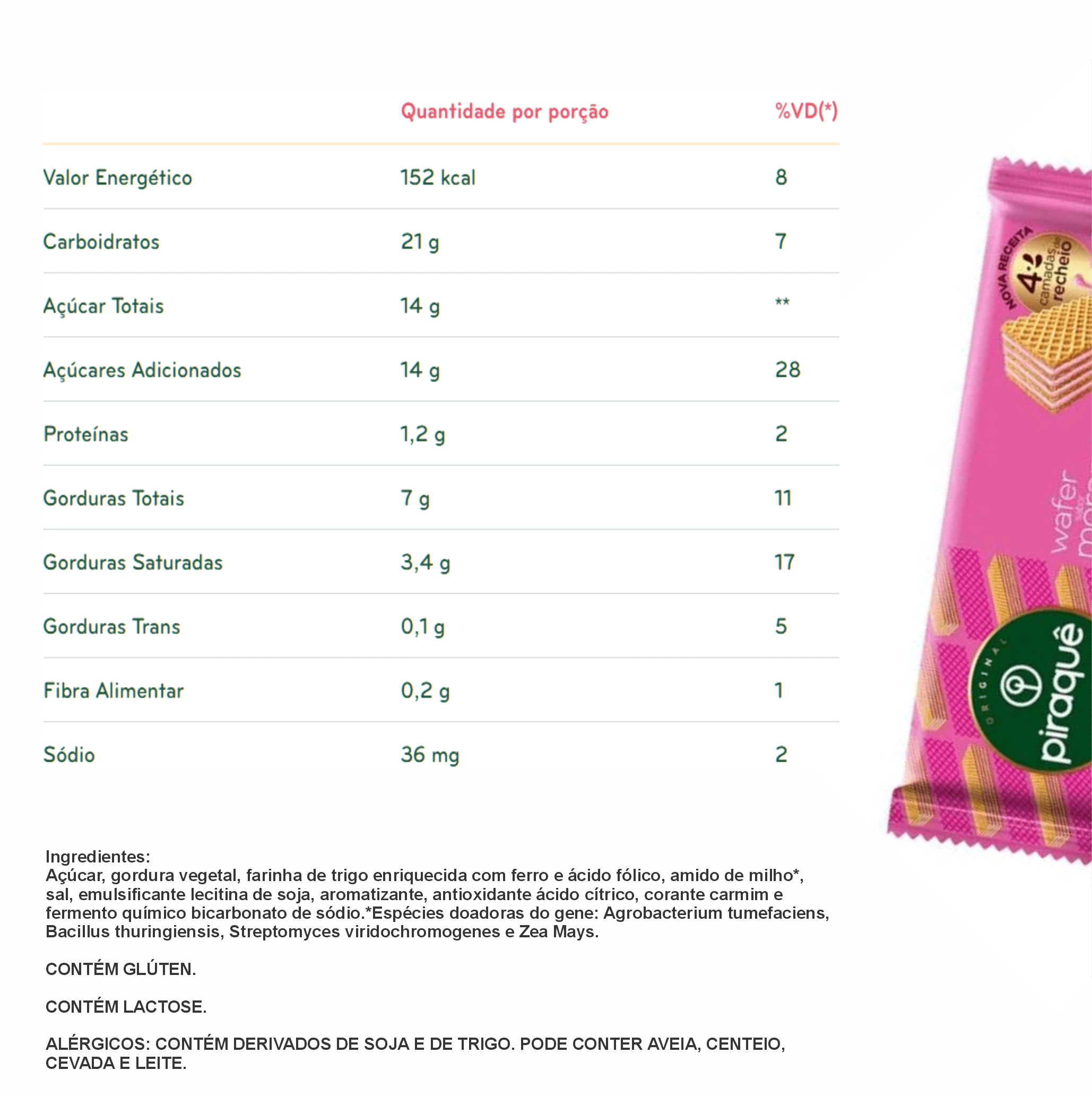 WAFER PIRAQUÊ MORANGO 100g
